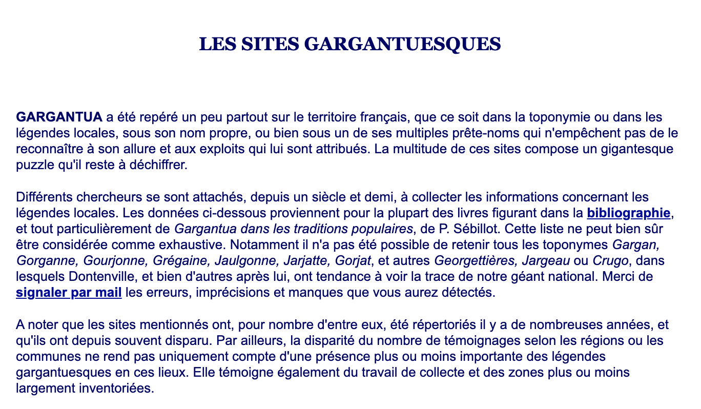 Les sites gargantuesques