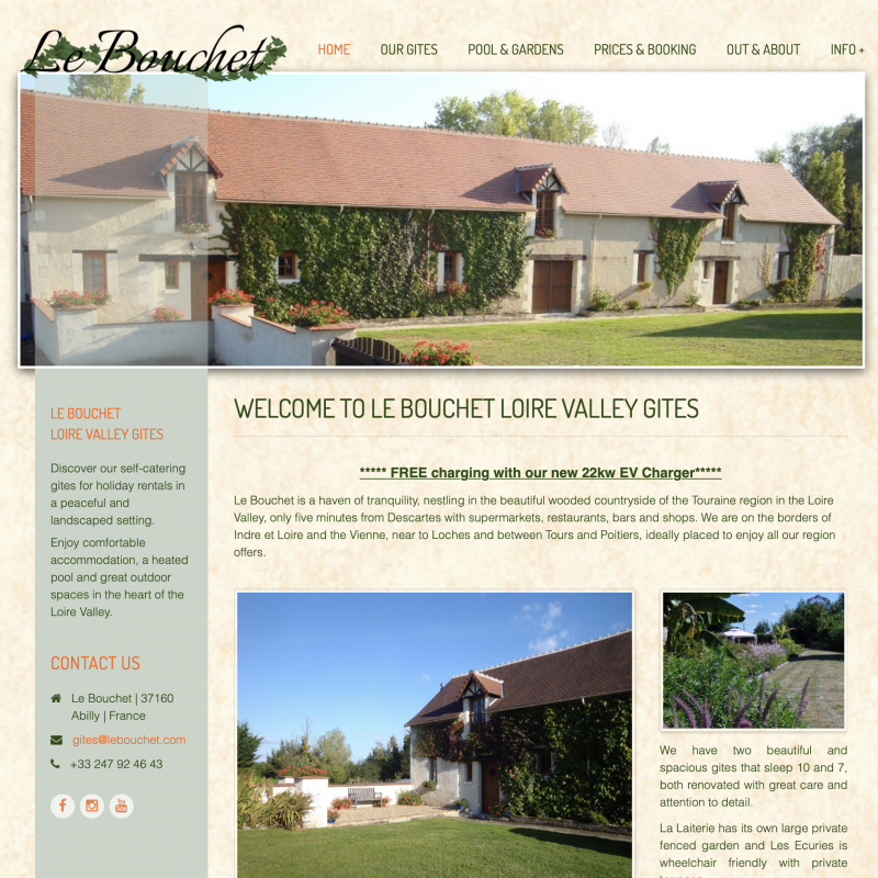 Nos 5 gîtes indépendants vous permettront de vous réunir en famille ou entre amis grâce à ses 60 couchagesLe gîte possède 3 marches à l’entrée et l’une des chambres est à l’étage.Un tiers-lieu atypique qui propose diverses prestations : Epicerie, Cave à vin, cave à bière, produits locaux, Chambres d’étapes.WELCOME TO LE BOUCHET LOIRE VALLEY GITESOuverture d’avril a octobre. Ses 33 emplacements ainsi que ses 3 mobils-homes et sa roulette vous offriront une vue imprenable sur la Claise animée de ses cascades et petits ruisseaux