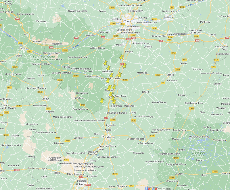 Les villes et villages du pays de Sainte-Maure-de-Touraine :