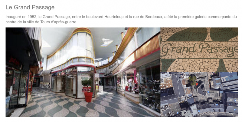 Inauguré en 1952, le Grand Passage, entre le boulevard Heurteloup et la rue de Bordeaux, a été la première galerie commerçante du centre de la ville de Tours d’après-guerre.