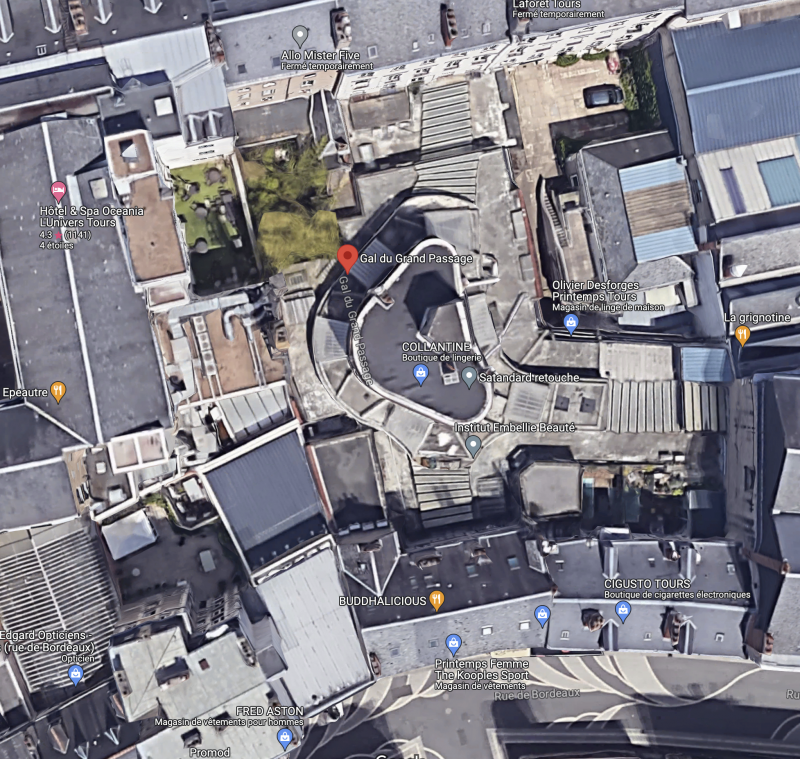 Entre la Place Jean-Jaures et la gare de Tours, la rue de Bordeaux, rue piétonne et son Grand Passage vous permet de rejoindre le boulevard Heurteloup.